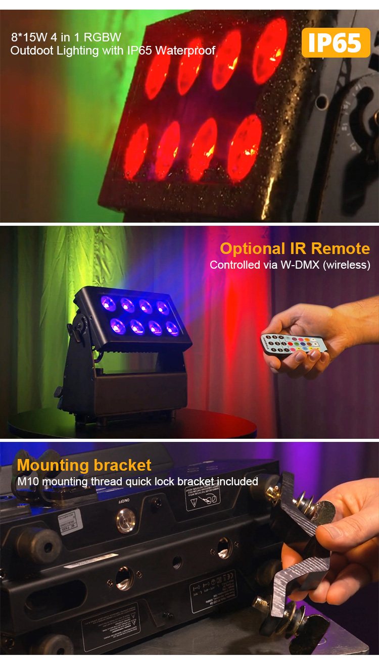 | LED Type: | 8*15W 4 in 1 RGBW |