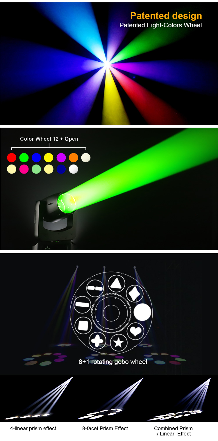 Dasen Imager is our brand of moving head.This series of products fully demonstrates our technological breakthroughs and product creativity in the lighting industry. We started from our original intention, providing solutions for users based on application scenes to let people can truly experience the value brought by lighting!Imager B200 is provided with a highly innovative colour section including patented eight colour wheel technology and most colourful prism effect. It offers a wide choice of 8+1 rotated gobos,IP rate is IP66 which increasing the possibilities for meeting any challenge in all conditions. This compact luminaire devised for stage and rental markets offers incredible creative potential.