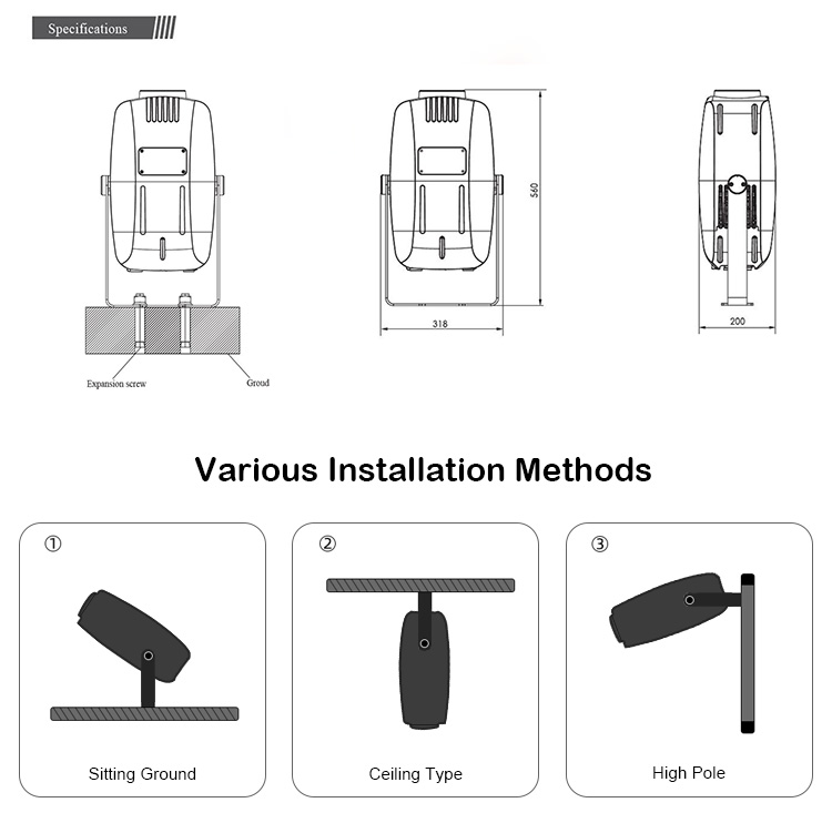 | Device Linking | DMX in/out(3 pin),power in/out | ||