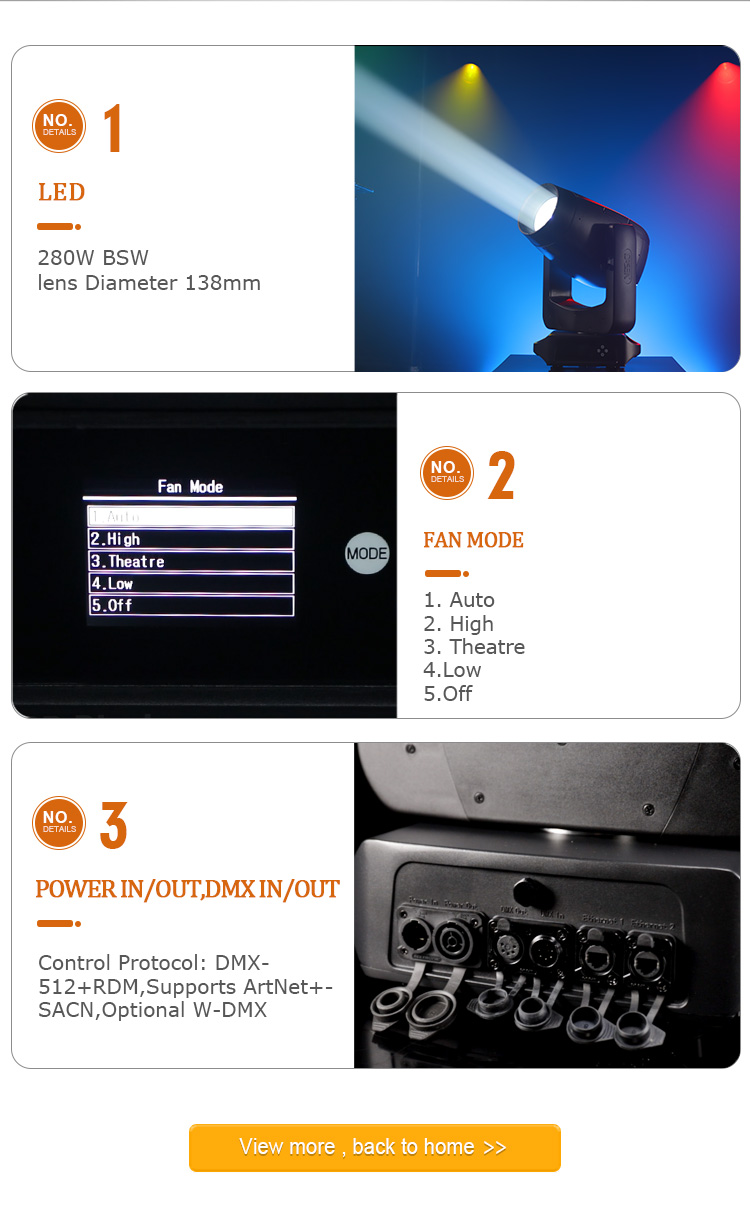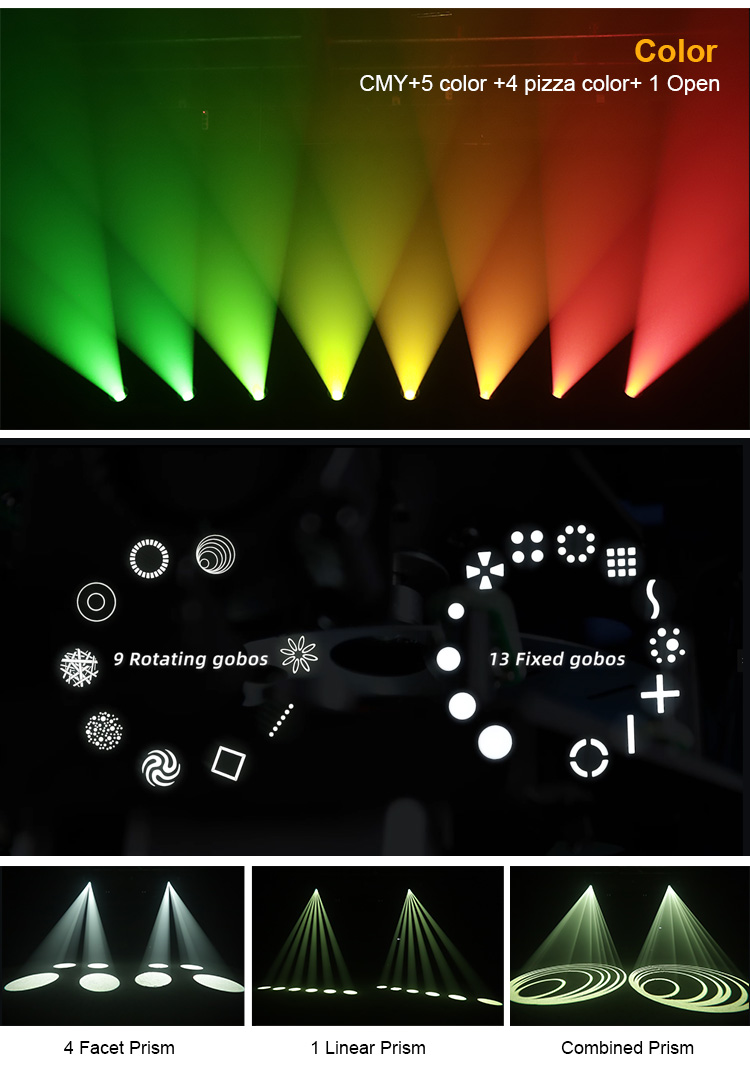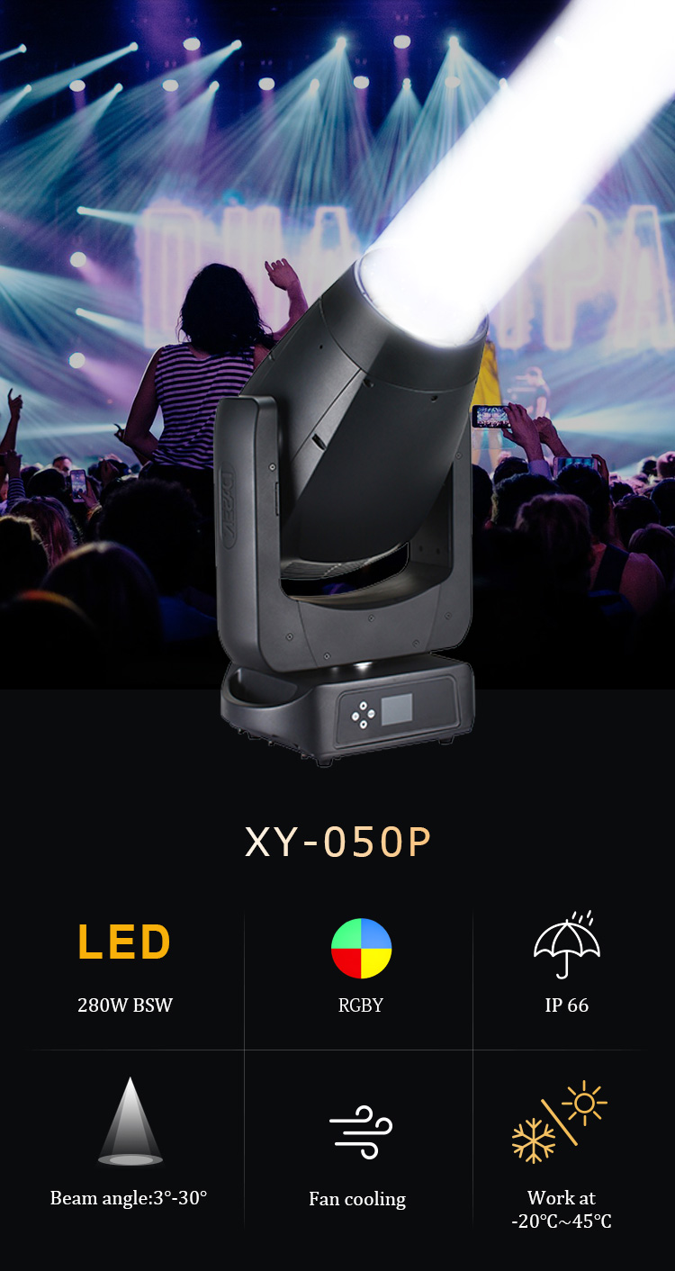 Imager H280 is provided with a highly innovative colour section including patented four colour wheel technology and most colourful prism effect. It offers a wide choice of 13+1 fixed gobos and 9+1 rotated gobos,IP rate is lP66 which increasing the possibilities for meeting any challenge in all conditions. This compact luminaire devised for stage and rental markets offers incredible creative potential.