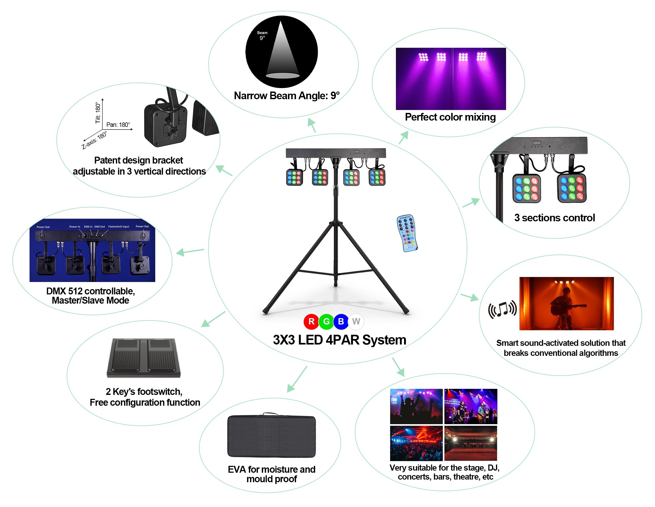 Function | Auto Run,Sound mode,Static color,Buiit-in,Master & Slave,DMX,RDM |