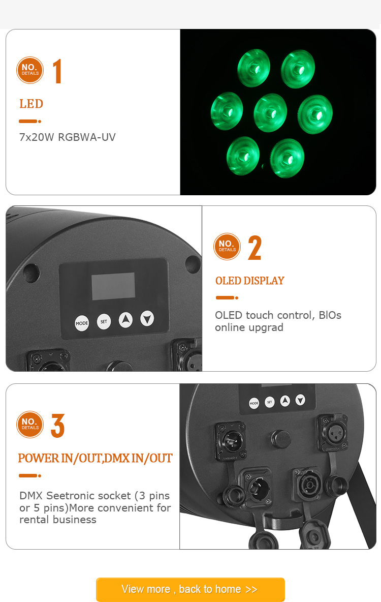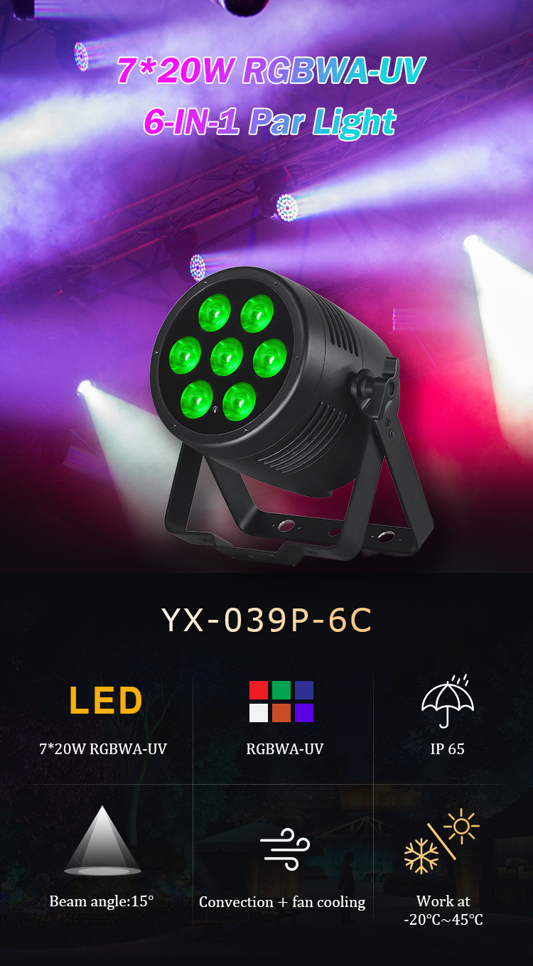 2.Full RGBWA-UV color mixing plus dedicated UV for vibrant looks and glow effects